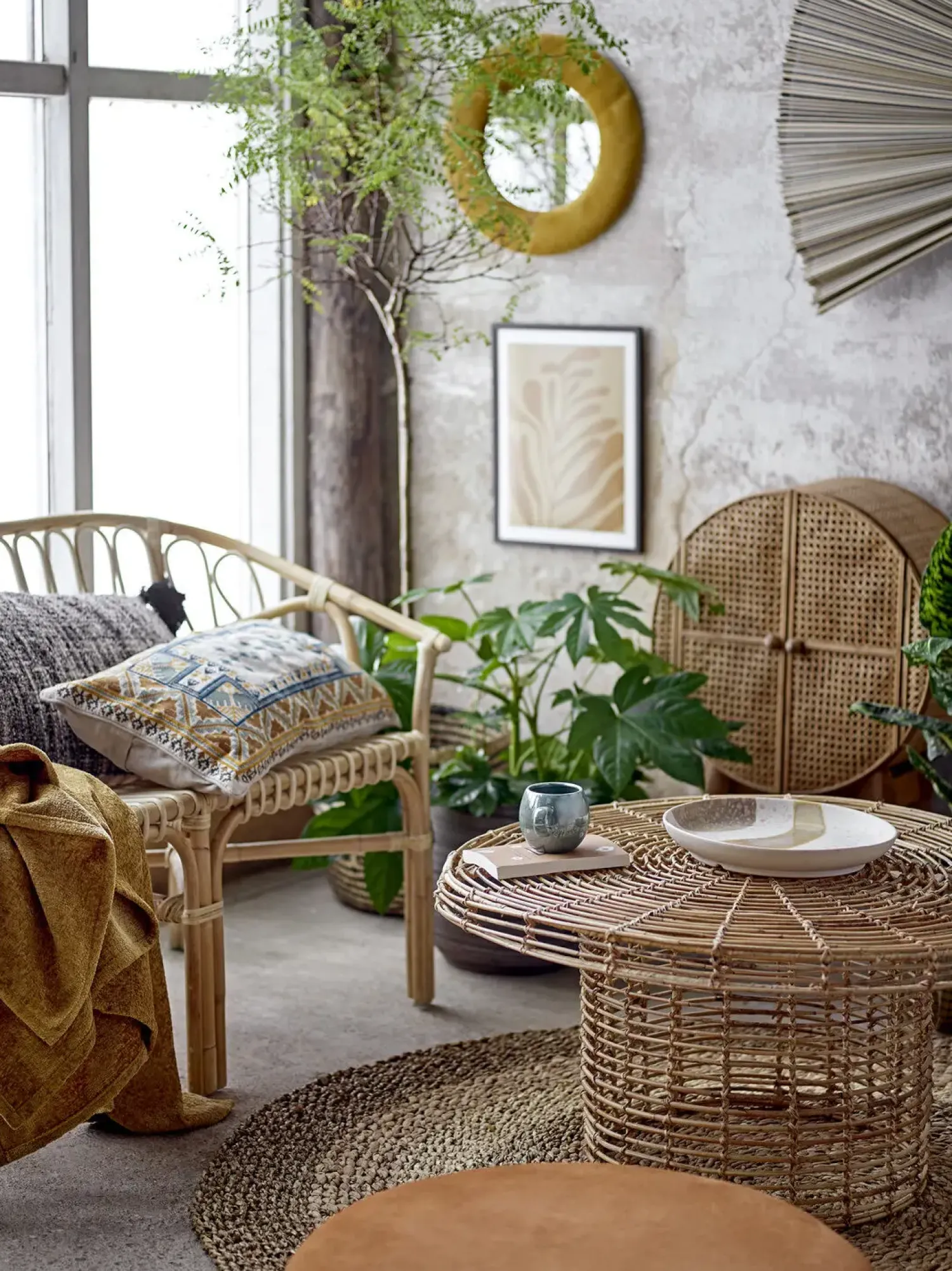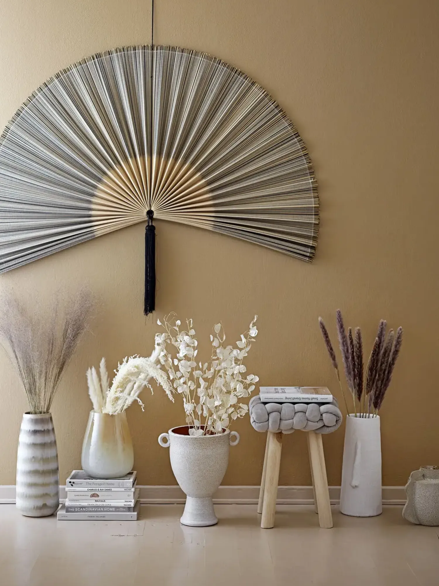 Unik vægdekoration lavet af bambus og bomuld. Placer den på en væg i stuen eller over sengen – smuk hvor som helst.