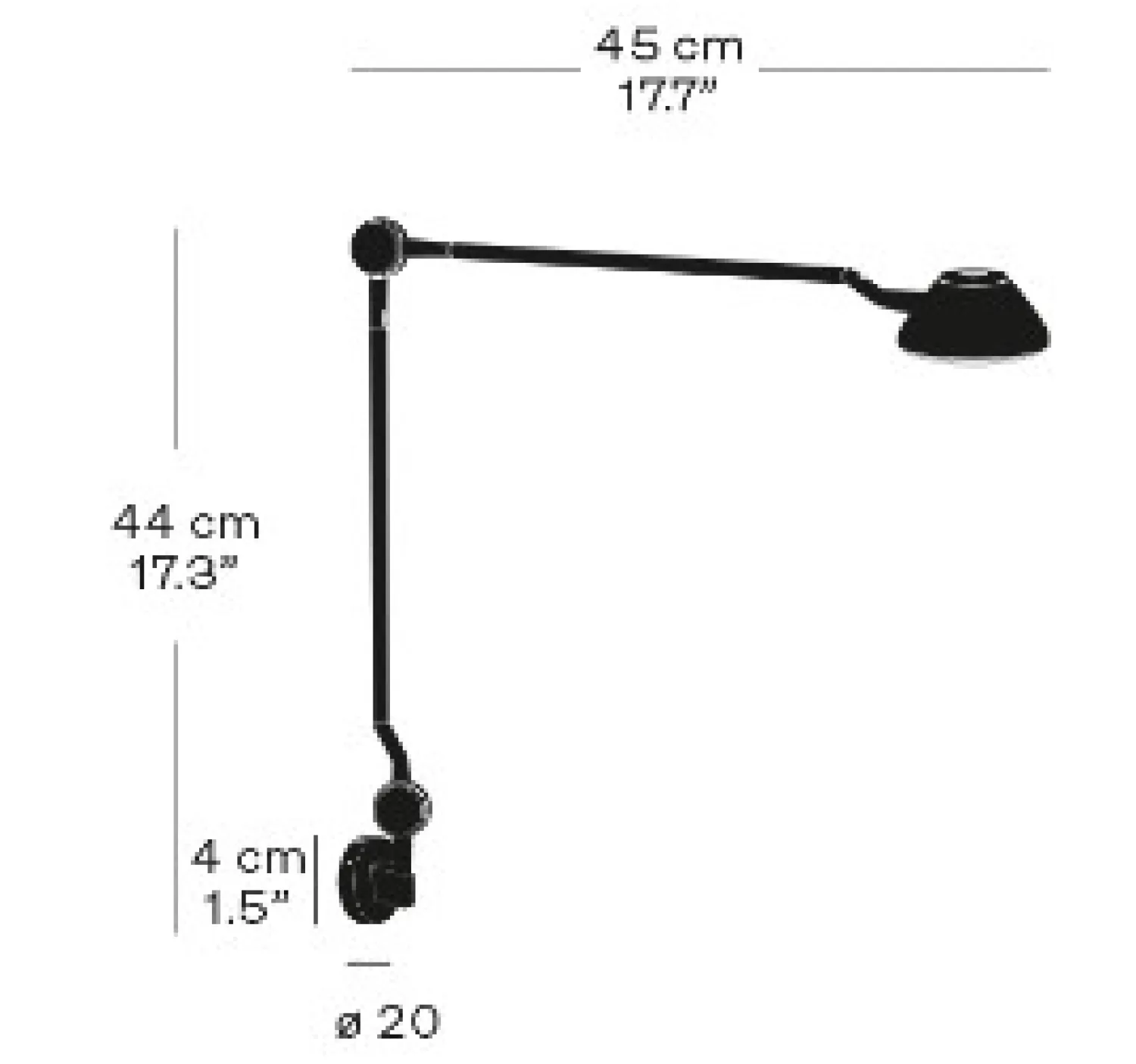 - Dybde: 45 cm