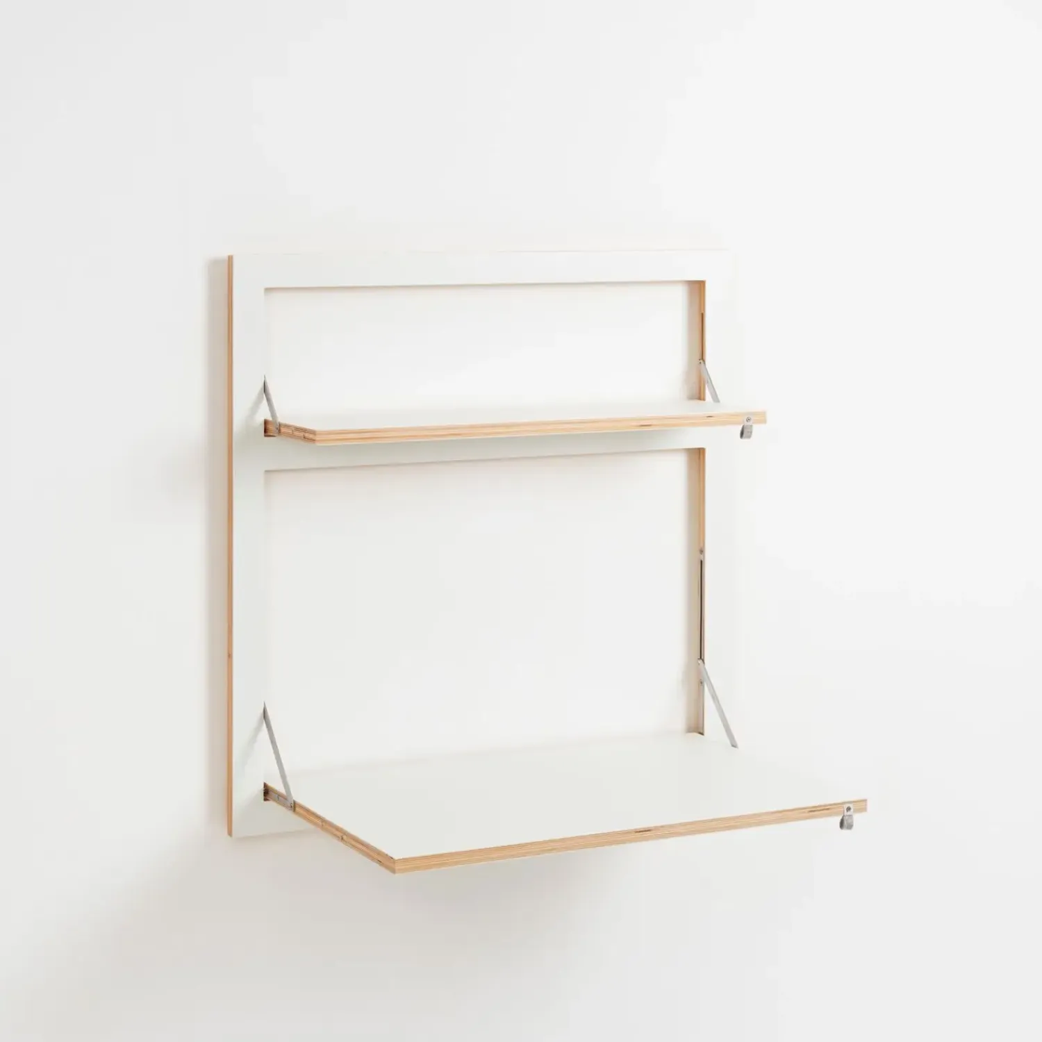 Super skøn arbejdsstation fra Ambivalenz. Kan bruges som hylde, skrivebord eller kreativ arbejdsstation. Er også ideel til børneværelset, hvor der kke er plads til et stort skrivebord. Fold ud når du har brug for det og op igen, når du er færdig.