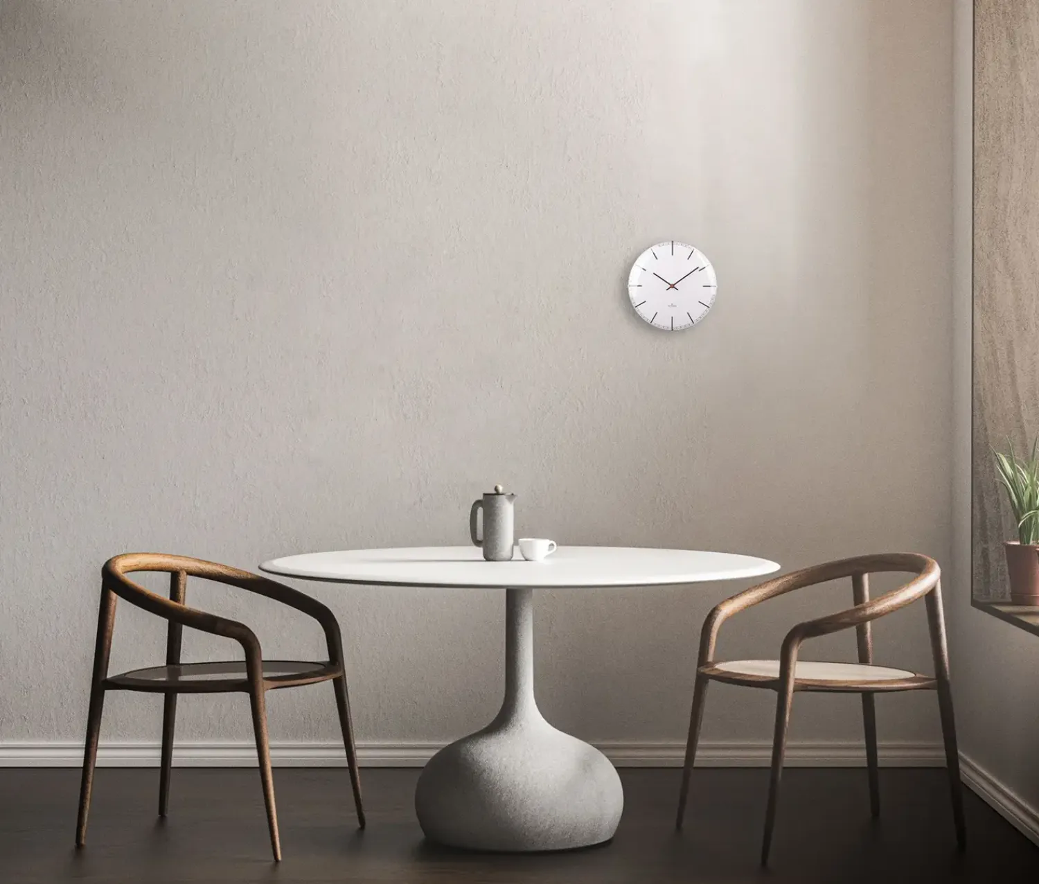 Huygens Dome væguret er et vidunderligt og minimalistisk ur, der passer til ethvert interiør. Et ur med et moderne urskivedesign, men med et konvekst glasdæksel. På grund af visernes jævne bevægelse har dette ur et meget støjsvagt urværk. Kort sagt, et vægur med et tidløst design kommer til sin ret i ethvert rum.