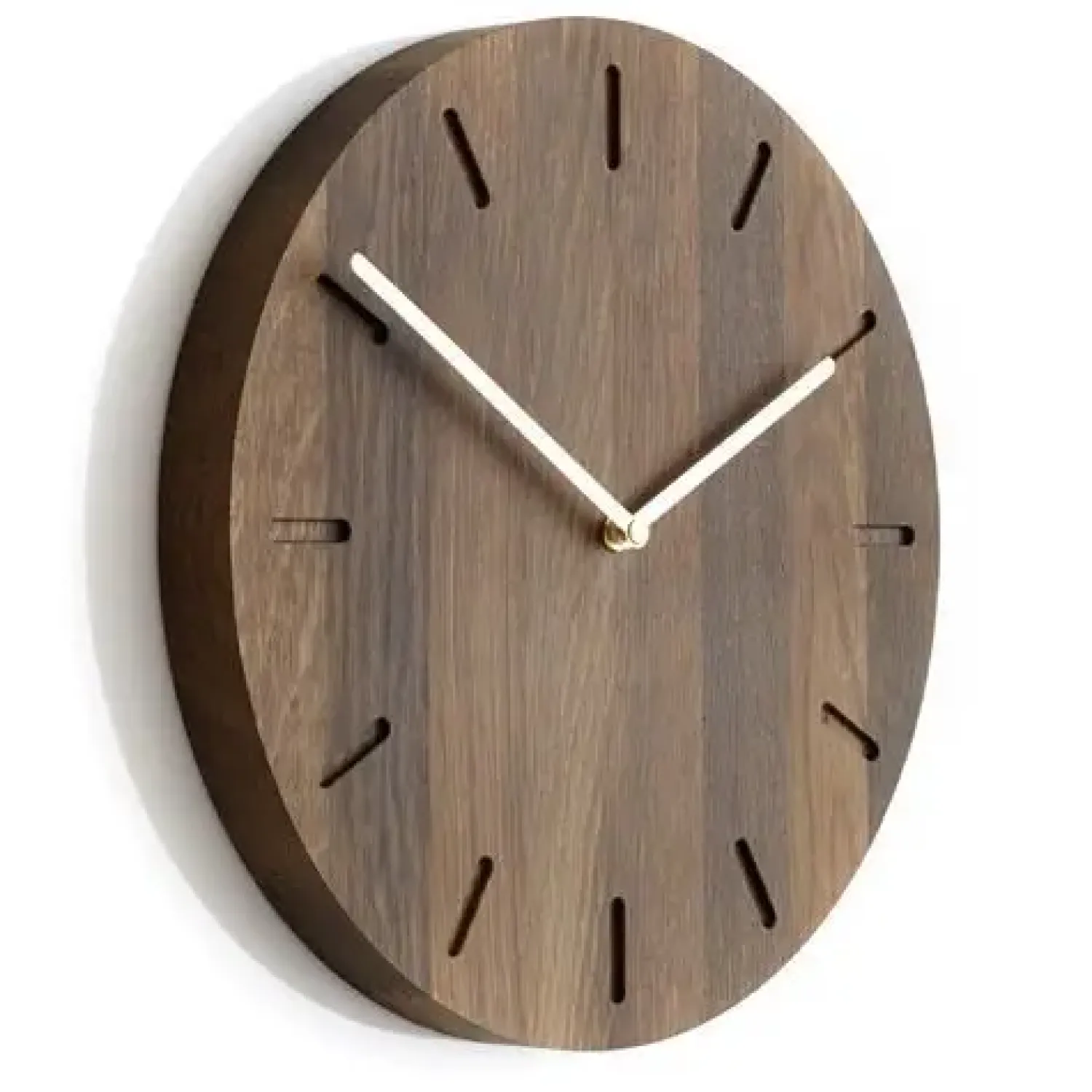 Dette vægur fra Applicata kombinerer massiv, røget eg med messingvisere i et afdæmpet design. Med en diameter på 32 cm og en tykkelse på 3 cm passer uret naturligt ind i både store og små rum.