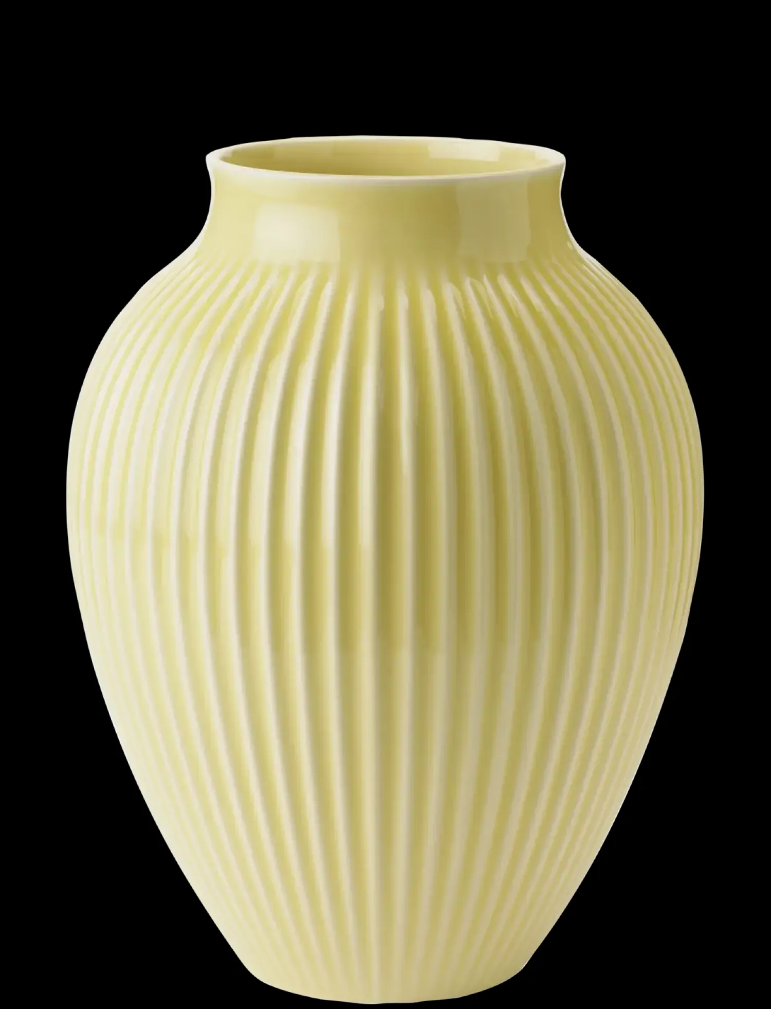 Gennem tiden har Knabstrup Keramik produceret et utal af smukke vaser i forskellige formgivninger. Denne vase er vi særligt stolte af. Den blev oprindeligt formgivet i slutningen af 1940’erne og med sin elegante og klassiske form er vasen et tidløst stykke keramik, der holder stilen langt ind i fremtiden. Knabstrup vasen er designet, så den ikke bare præsenterer sig selv, men også sæsonens blomsterbuketter og grene på smukkeste vis. Nu lanceres vasen med riller, hvilket giver den klassiske form helt nyt liv og giver et moderne og interessant udtryk, som passer perfekt ind i den nordiske boligindretning.