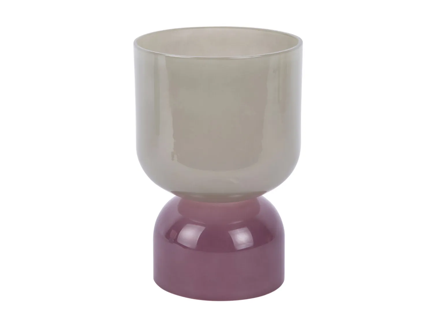 Denne vase bringer farve og kunstnerisk udtryk til dit hjem med sit tofarvede design. Den grågrønne top møder en lys lilla bund, hvilket skaber et moderne og iøjnefaldende look. Den er lavet af glas med en glat, blank overflade, der er nem at rengøre og vedligeholde.