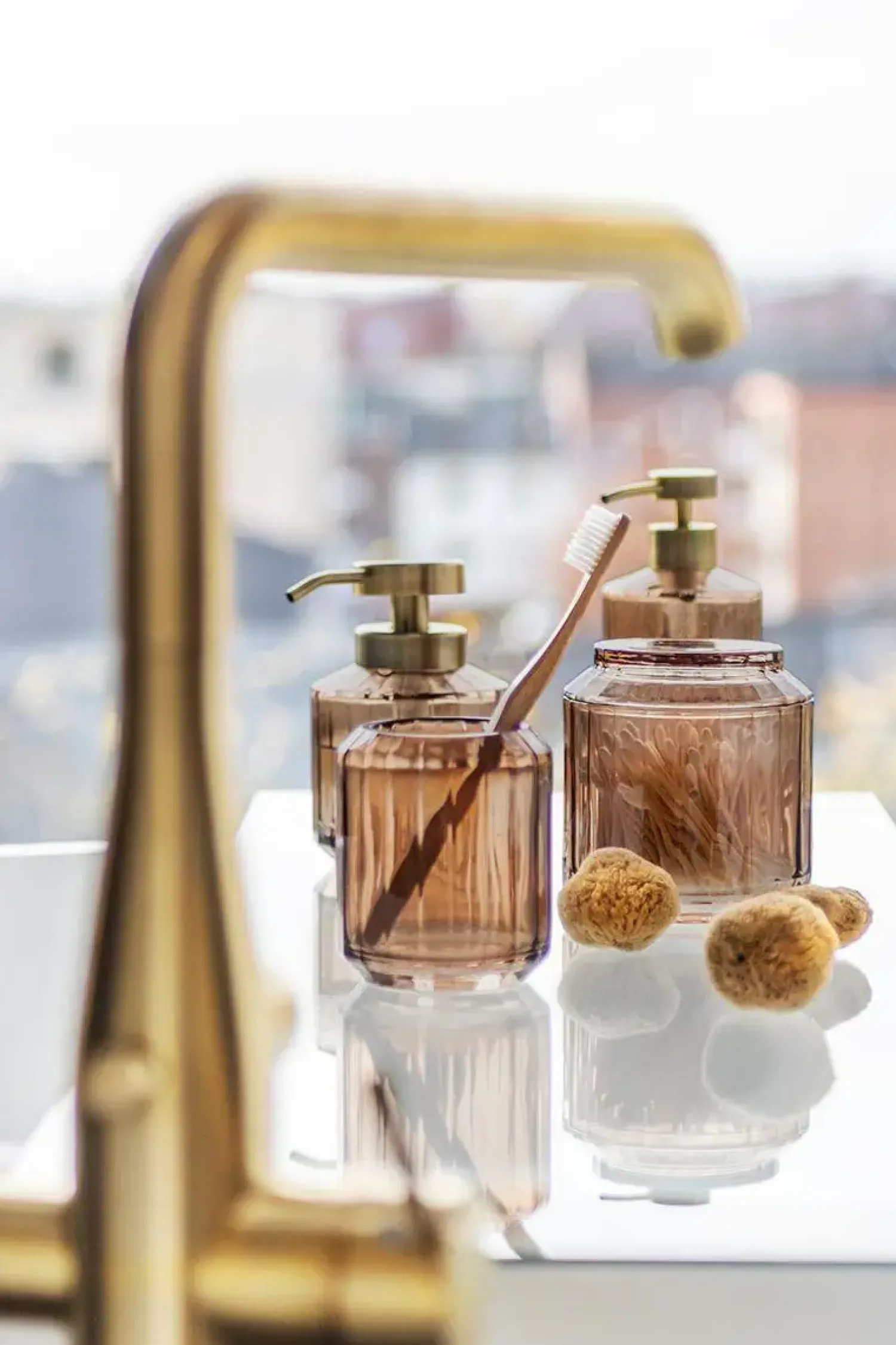 Tandbørsteholderen kan foruden sin brug på badeværelset også benyttes på kontoret til blyanter og kuglepenne eller som urtepotte eller lille vase i husets øvrige rum. Mix og match med de andre produkter i serien.