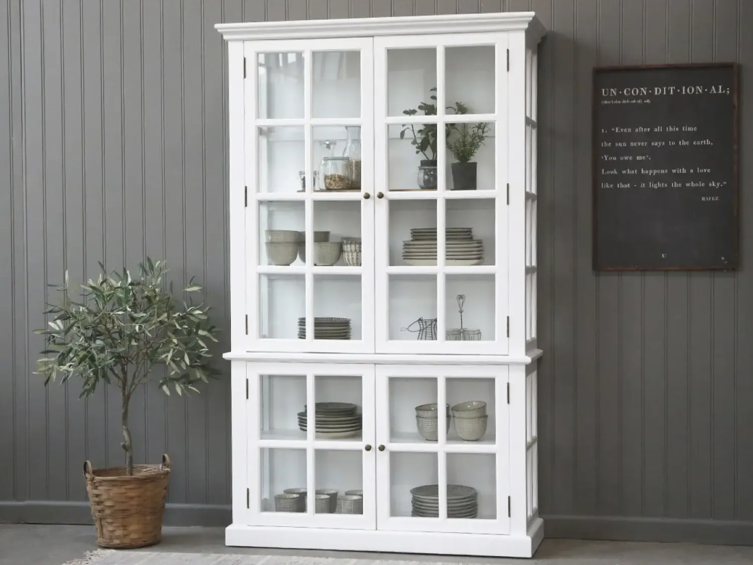 Her kan du opbevare dine smukkeste glas, vaser og andet, du ønsker at vise bag disse dine glaslåger.