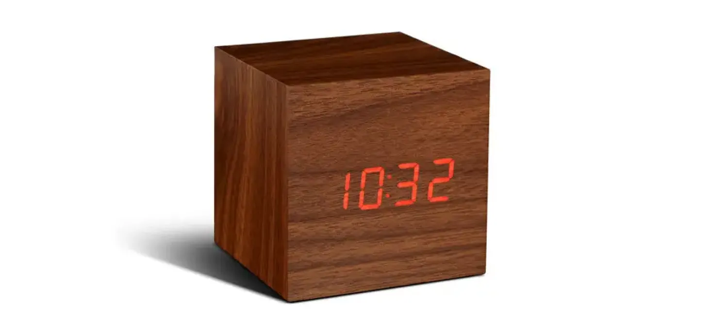 Gingko – Wooden Cube Click Clock Walnut / RØD LED